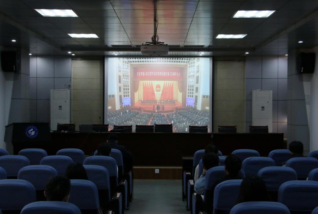 在中国人民志愿军抗美援朝出国作战70周年之际,为了铭记历史,致敬英雄,深化“四史”学习教育,10月28日下午,正规滚球app平台官网本科生第三党支部在J15-219报告厅开展了“弘扬爱国精神,勇担时代重任”主题党日活动,全体党员参加。
