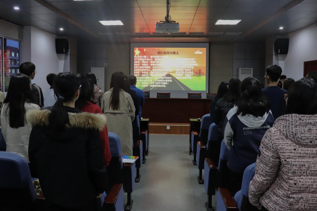 刘晶讲解结束后,院长助理王刚教授对党课进行了总结并向同学们提出了要求,他要求大家加强专业学习,做好本职工作,以优秀教师、优秀学生党员为榜样,向学院走出的杰出校友学习,牢记初心使命,坚定理想信念。最后,全体党员合唱《我们走在大路上》,以歌声表达了对中国特色社会主义道路的坚强信心和为实现中华民族伟大复兴的中国梦而努力奋斗的坚定决心。