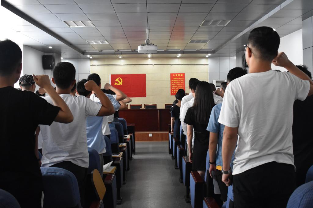 在刘晶的带领下,全体毕业生党员高举右拳,在庄严的党旗下用饱满的激情和洪亮的声音重温了入党誓词,表达了作为共产党员的自豪感与使命感,抒发了对党忠诚的意志和信念。