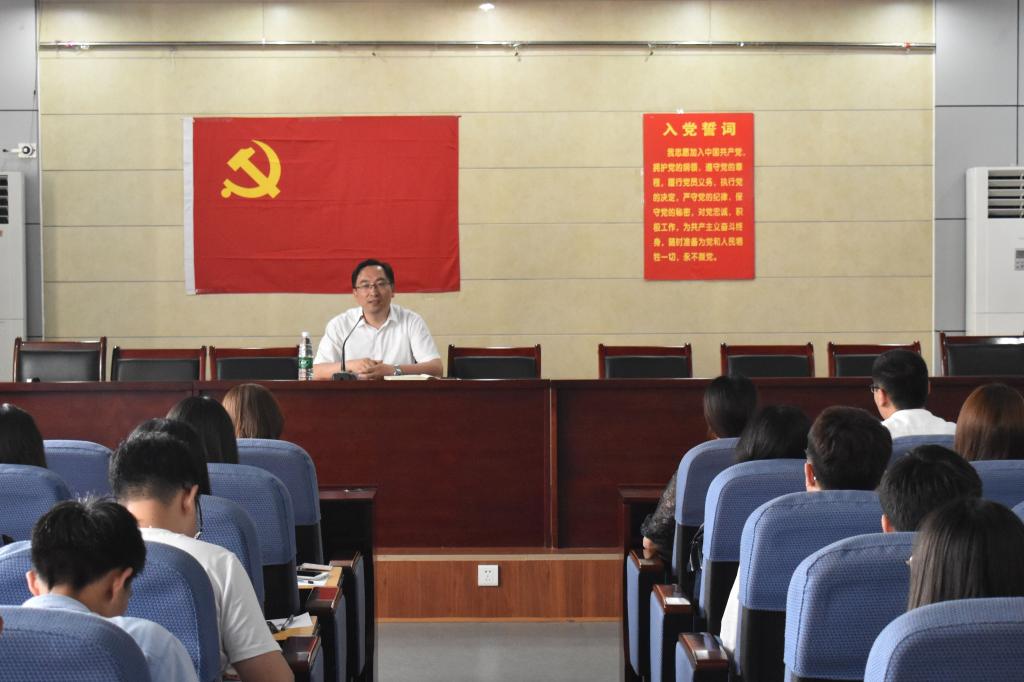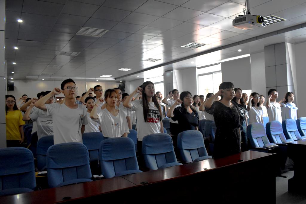 6月18日,正规滚球app平台官网组织2019届毕业生党员在J15-219报告厅开展了“重温一遍入党誓词,再上一堂专题党课”活动。学院党委副书记郝亮,本科生党支部书记刘晶、尚军、王贝贝,2019届毕业生党员参加了本次活动。