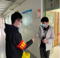 在担任疫情防控志愿者的过程中,志愿者们发现宿舍和餐厅是同学们进出和生活最多的地方,各支部党员主动组建党员先锋岗,积极配合楼长、层长以及楼管等开展防疫志愿服务工作,在餐厅、宿舍进行值班,督促每一位进入餐厅和宿舍的同学佩戴口罩、进行刷脸测温等。