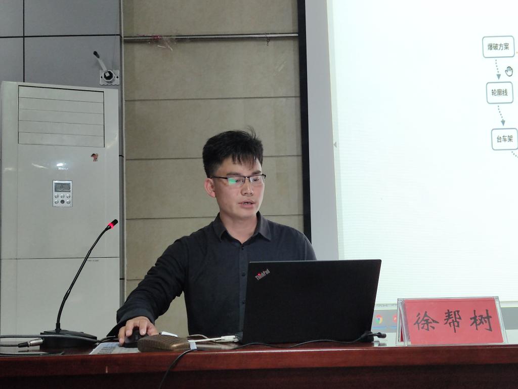 报告中,徐帮树围绕“重塑钻爆管理流程”的概念展开论述。他结合当前隧道掘进管理粗放、隧道掘进爆破设计软件不成熟等实际问题,向与会师生分享了自己的研究成果和在产学研结合方面所做的努力。他带领团队深耕钻爆现场,提取数据参数,实现了现场信息的参数化、精确化。此外,他提出分区智能设计理念,通过内置算法,一键生成钻爆方案。基于机器学习、数据挖掘,徐帮树实现了钻爆参数的动态调整。最后,徐帮树向大家介绍了他开发的“多邦爆破”钻爆管理平台,目前已实现对多类型、多工况钻爆现场的有效适配。