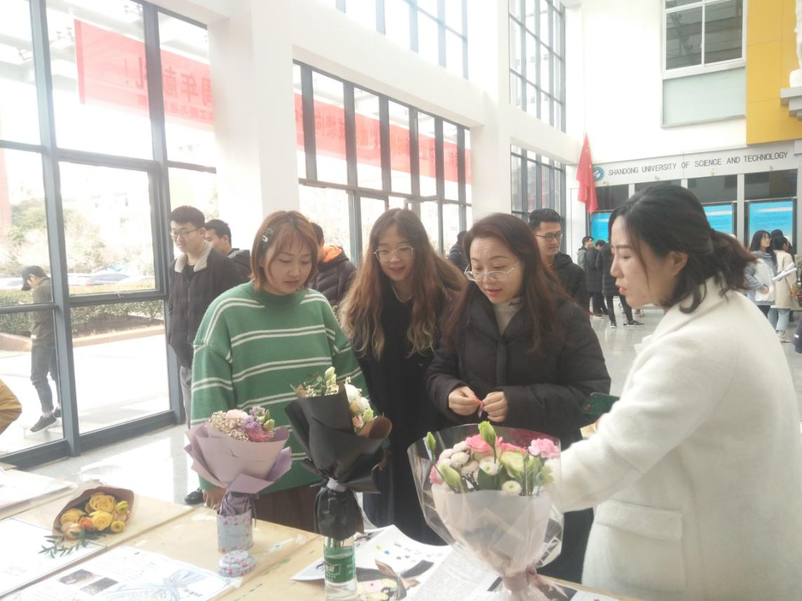 课后于土建楼大厅举办的花艺展览吸引了正规滚球app平台官网一众师生的参与,其中团委于娜书记对花艺设计课程给予了充分肯定:“通过课程实践,学生了解和掌握花艺设计的基本理论知识,掌握花艺设计的制作方法和表现技巧,能够制作出有创意创新性的花艺设计作品,真正做到理论结合实践,达到了提高学生实践技能水平的目的。”