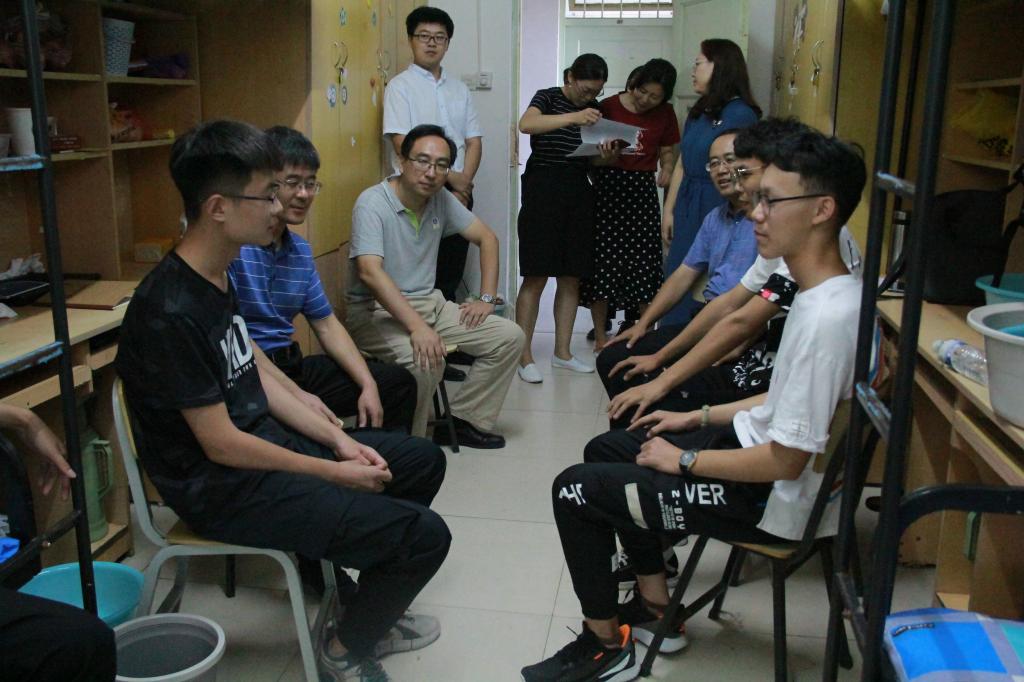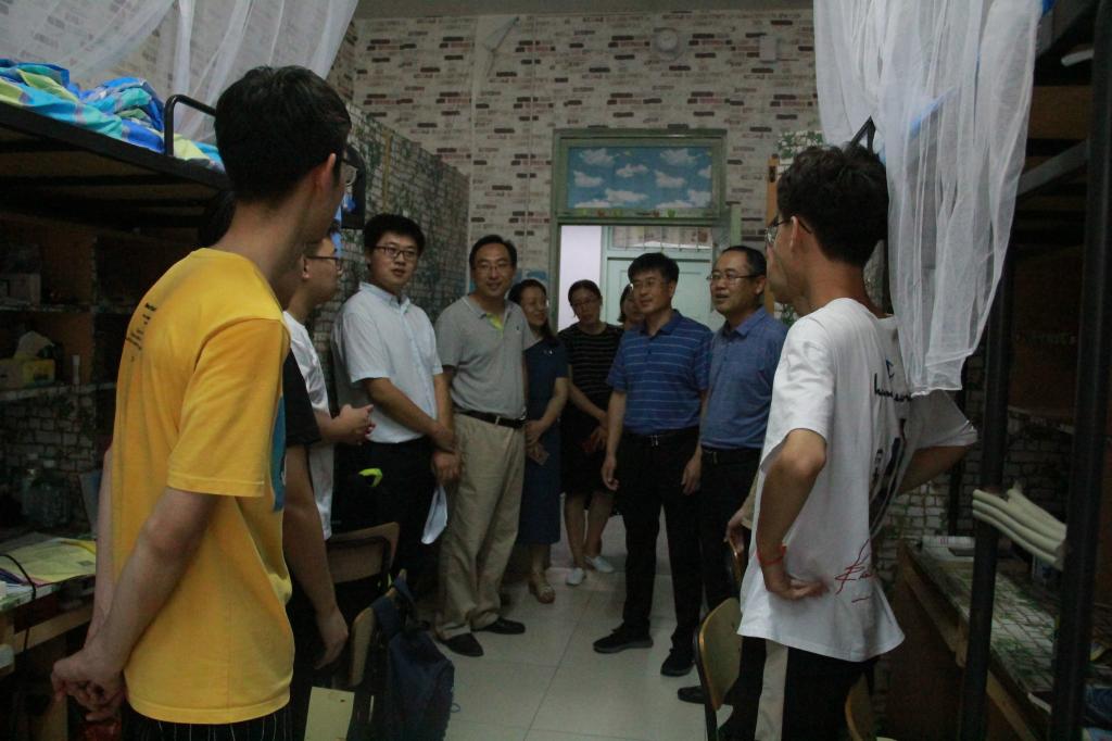 下午,学院党委副书记(主持工作)宋西路,院长王崇革,党委副书记、副院长郝亮,团委书记于娜以及新生辅导员来到宿舍慰问新生,与新生和家长进行亲切交谈,代表学院欢迎他们的到来,向他们介绍了学院情况、叮嘱了大学注意事项。