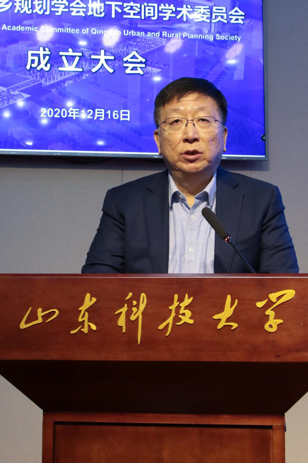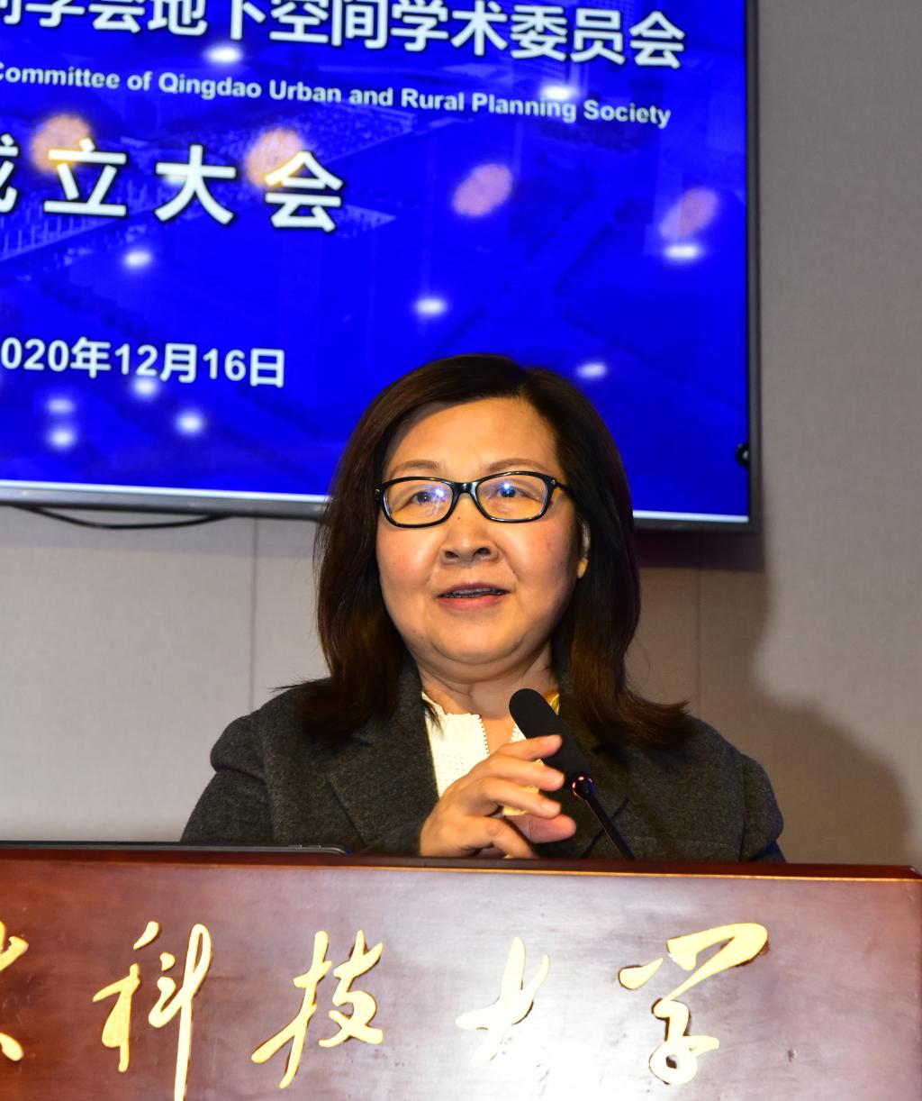 潘丽珍代表青岛市城乡规划学会发表致辞,介绍学会情况和地下空间学术委员会成立背景,希望地下空间学术委员会成立后,能够发挥学校优势,在促进青岛城市地上、地下有机协同发展的同时,扩大在全国地下空间领域的影响力。
