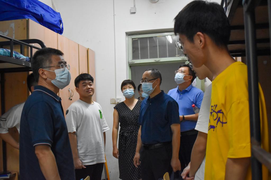 院党委书记宋西路、院长王崇革、院党委副书记高静、副院长李朋前往新生宿舍慰问新生,关心新生们的生活情况;对宿舍出现的问题提出解决方案;并给予22级新生三点建议:锻炼自己独立处事的能力、尽快适应大学生活、谨防诈骗保护私人财产。