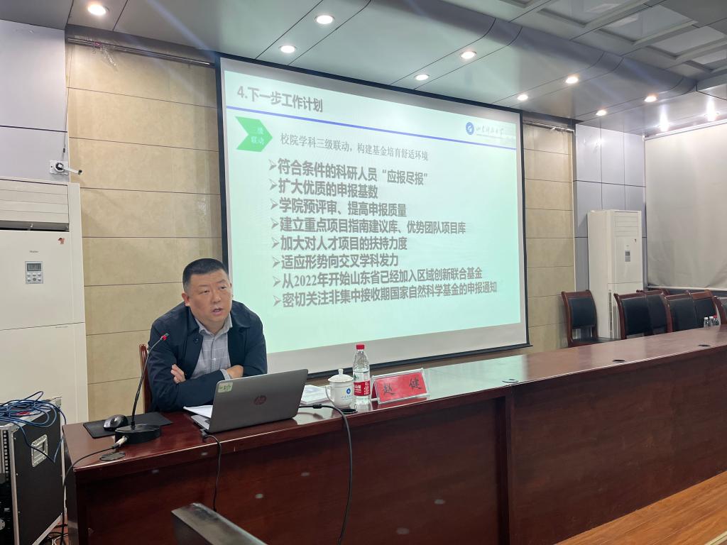 11月9日下午,正规滚球app平台官网在219报告厅召开2023年国家自然科学基金申报启动会,会议邀请了科技处副处长赵健及国家杰青、中国海洋大学教授陈旭光作报告,副院长李为腾主持会议。