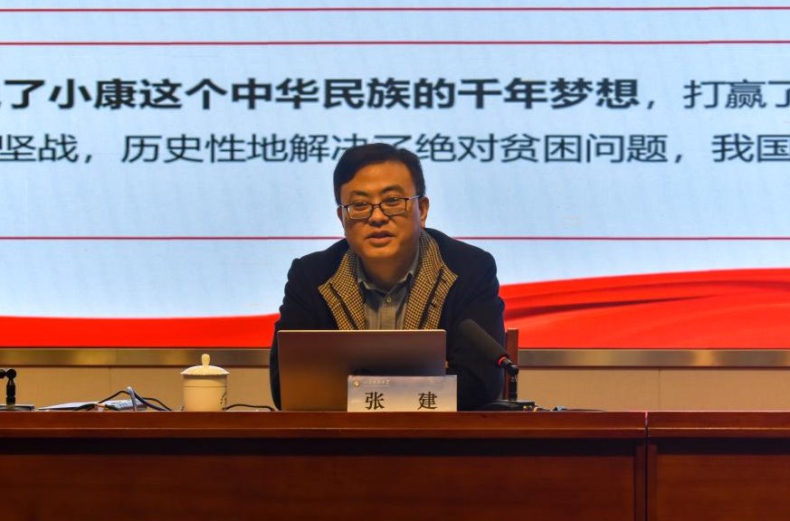 报告会上,张建从党的二十大的主题和主要成果、过去5年的工作和新时代10年的伟大变革、马克思主义中国化时代化、中国式现代化、全面建设社会主义现代化国家的目标任务、坚持党的全面领导和全面从严治党、应对风险挑战等七个方面,对党的二十大精神进行了全面深入系统的宣讲解读,并与师生交流了学习体会。