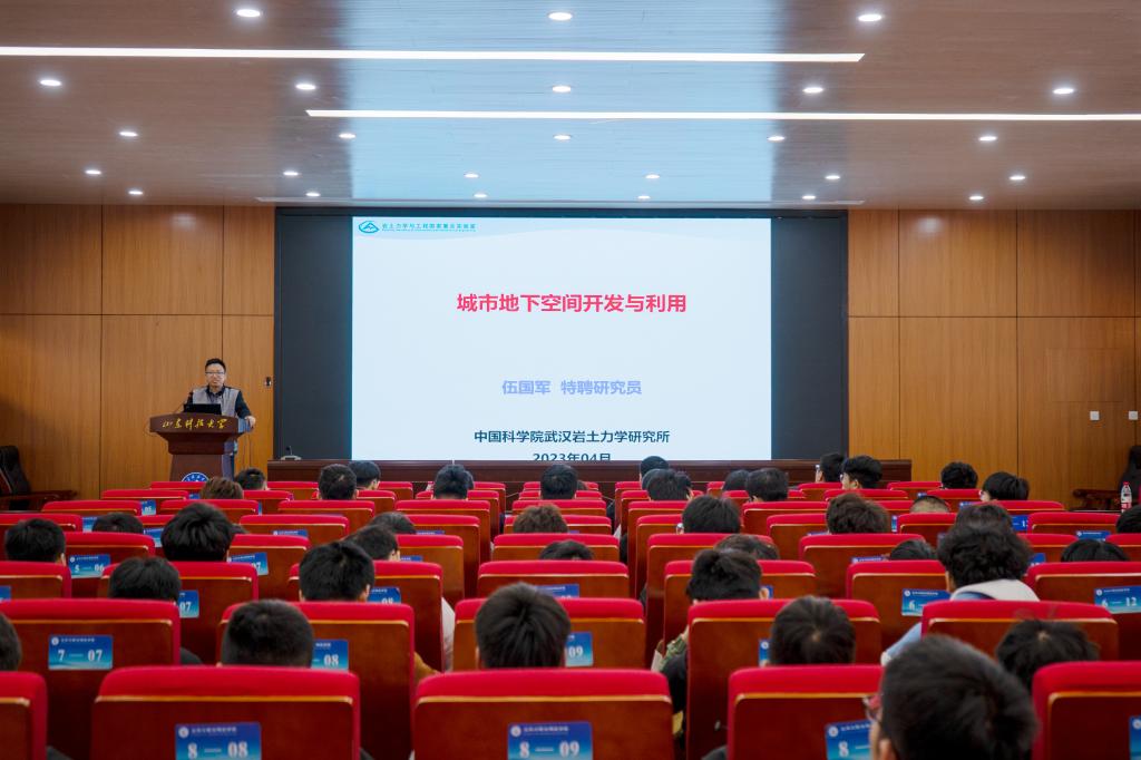 伍国军研究员以《城市地下空间开发与利用》为题,从城市地下空间发展前景、开发优势、开发需求、利用情况、当前问题以及团队介绍六个方面进行了具体的讲解,强调了岩土工程和城市地下空间工程的广大前景,希望同学们能博学笃行、知行合一。刘滨研究员就《地下工程施工过程“人-机-岩”信息互馈机理及智能化决策》这一主题,提出了“复合地层隧道掘进机安全高效施工”这一科学目标,并介绍了其研究方向、系所情况、团队情况等内容。赵亮为在场师生介绍了中国科学院武汉研究所的基本情况,从规模、师资等方面展开,带领同学们熟悉和了解中国科学院最新研究生招生政策。会后,中科院武汉岩土所一行领导及专家参观了滚球app平台官网实验室、院史馆等。