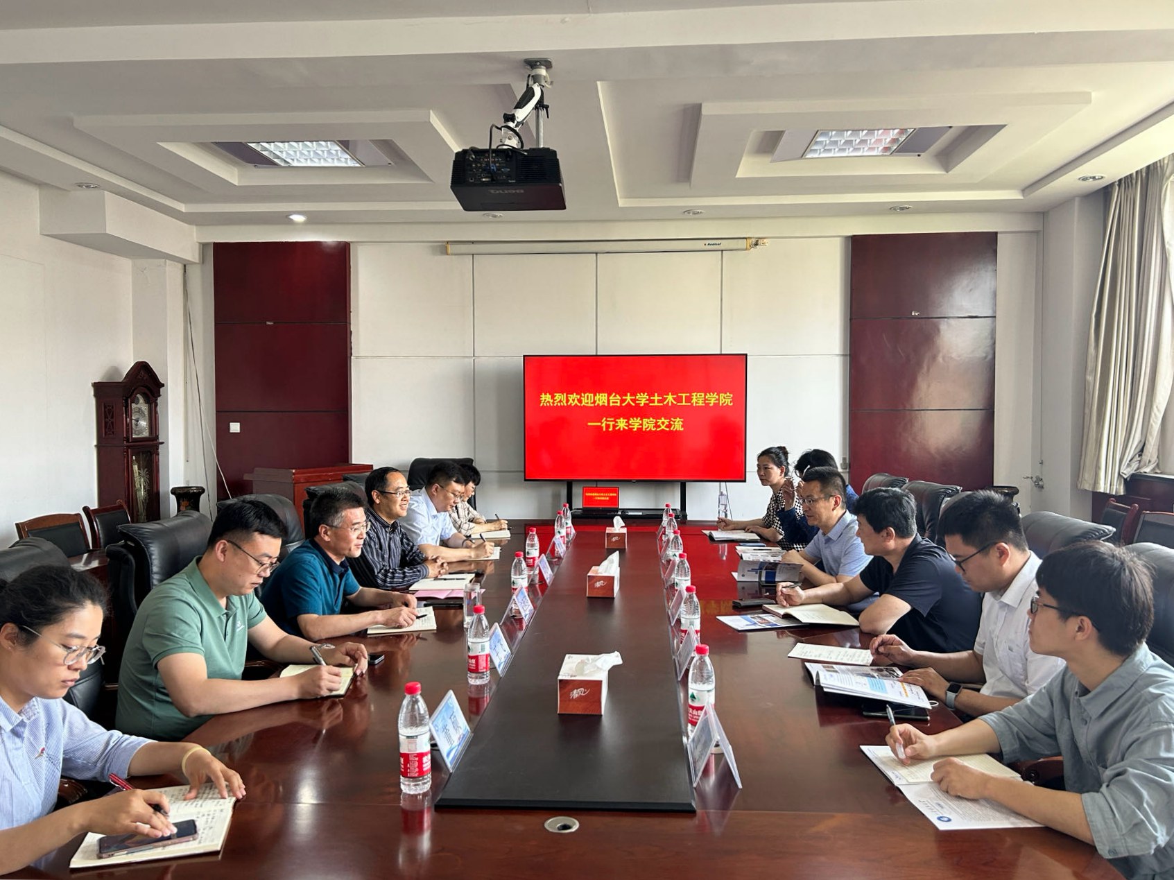 近日,烟台大学土木工程学院党总支书记曲峰、副院长吉植强、土木工程系主任刘人杰、岩土教研室主任王丹丹、温攀老师、张亮老师一行到访正规滚球app平台官网调研交流。正规滚球app平台官网党委书记宋西路、院长王崇革、副院长李朋、建筑工程系主任王飞及部分系所老师参加座谈会。座谈会由宋西路主持。