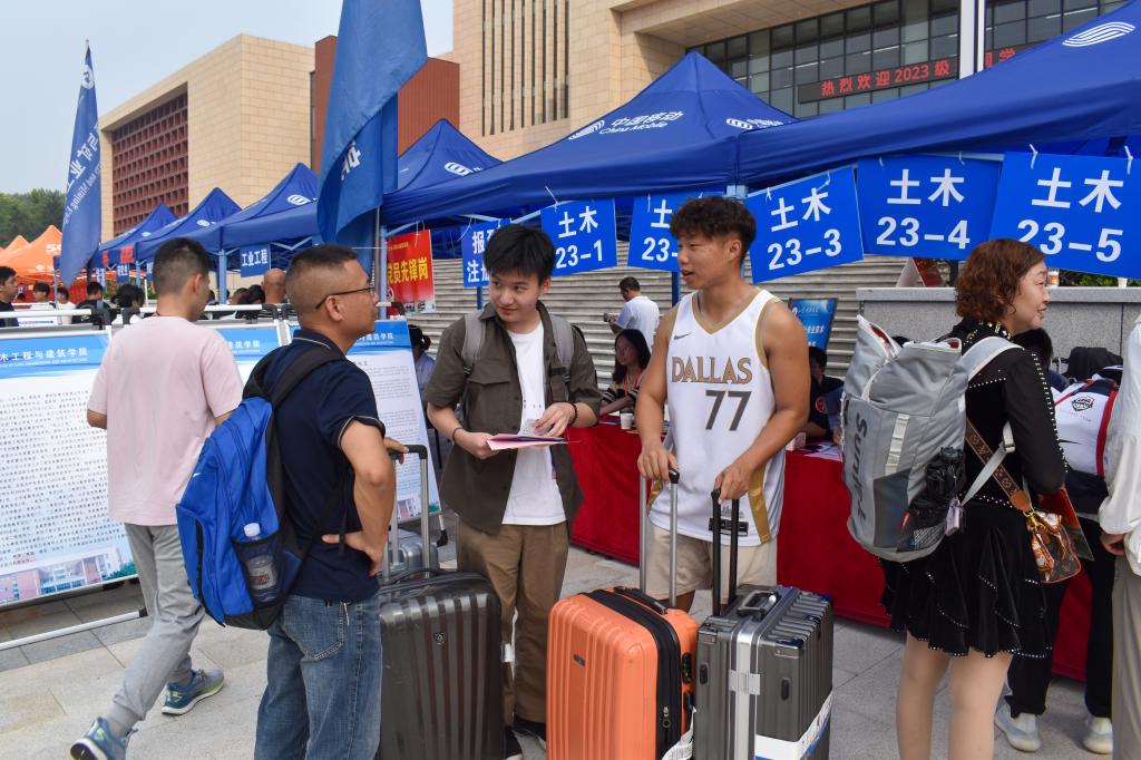 为了确保迎新工作顺利进行,土建学子轮班出动,从学校南门到报道处再到宿舍楼下,学长学姐们一路引导陪同。从衣食住行到学业社团,学长学姐们耐心答疑、积极解惑,为新生有一个美好的大学生活保驾护航。