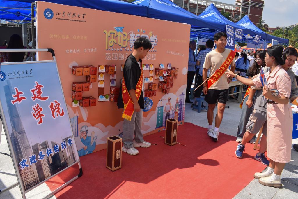 9月1日,正规滚球app平台官网迎新工作于图书馆前正式拉开序幕。工作人员各司其职,共同布置现场,为迎新工作开展打下了坚实的基础。迎新现场气氛热烈。在新生报到处,志愿者们有条不紊办理着入校手续,他们积极为新生答疑解惑,送上无微不至的关怀。在家长休息区,正规滚球app平台官网还准备了精彩投壶小游戏,同学们通过回答关于党的二十大、社会主义核心价值观、校风校训等相关问题获得投壶机会,投中便可抽取幸运盲盒。大家跃跃欲试,纷纷表示“来到山科,加入土建大家庭幸福感满满”。“愿大学四年充实愉悦”、“期待”、“嵙嵙越来越好”新生们积极参与活动,并将对大学生活的期待和憧憬留言于展板上。