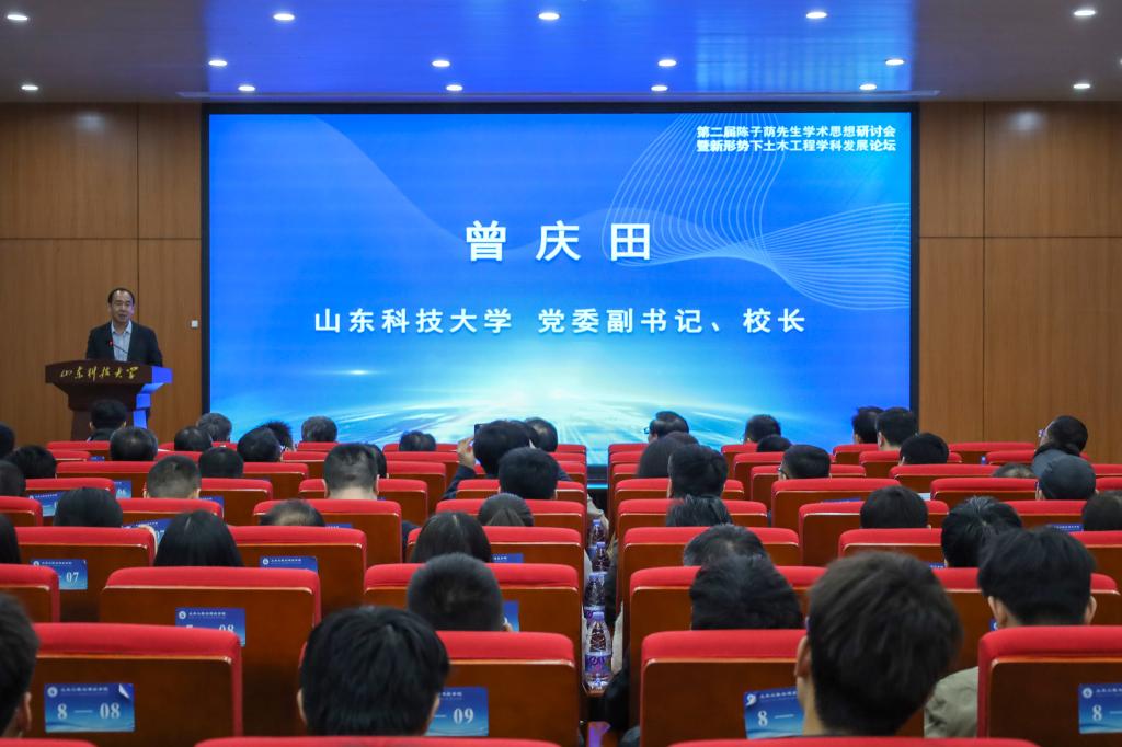 曾庆田在致辞中对参加会议的专家、校友以及合作单位代表表示欢迎,介绍了学校基本情况与近年来取得的成绩。他表示陈子荫先生学识渊博,一生关爱学生,培养出了以李术才院士为代表的一大批高层次人才,要传承和发扬好陈子荫学术思想,并以此次会议为契机对新形势下土木工程学科发展进行交流研讨,推动土木工程学科创新发展。