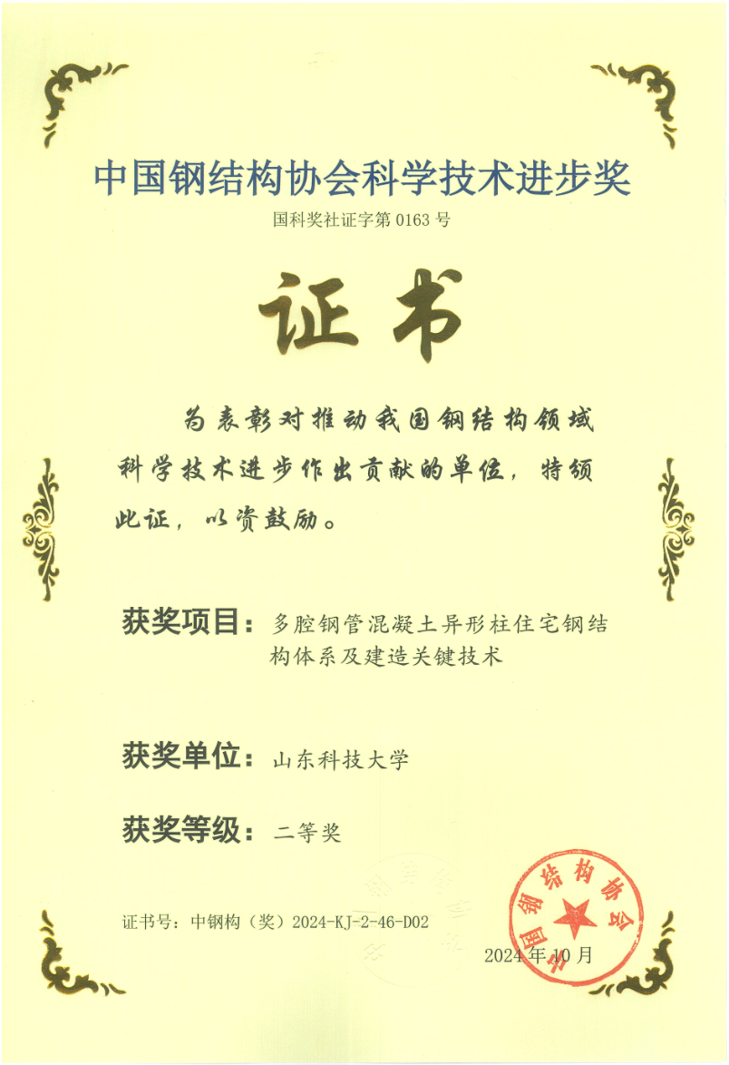近日,中国钢结构协会成立40周年大会暨2024中国钢结构大会在北京隆重召开,会上揭晓了2024年度中国钢结构协会科学技术奖评选结果。滚球app平台官网王来教授牵头的“多腔钢管混凝土异形柱住宅钢结构体系及建造关键技术”项目荣获科学技术进步奖二等奖(第二完成单位)。