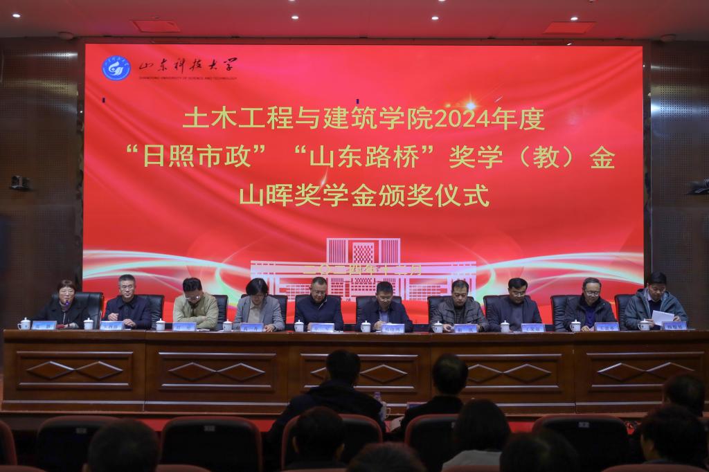 12月25日,正规滚球app平台官网在J9-144报告厅举行2024年度“日照市政”“山东路桥”企业奖教学金和山晖奖学金颁奖仪式。校团委书记高一丹,学生工作处副处长靳凯,研究生工作部副部长刘松,合作发展处副处长王荣超,日照市政工程集团常务副总经理牟军、安全部部长阚卫国、矿井建设2007级校友焦淑军,山东省路桥集团青岛分公司党总支委员、总工程师梅佳鸿,正规滚球app平台官网党委书记宋西路,院长王崇革,党委副书记、副院长高静,副院长、山晖团队党支部书记杨旭旭及师生代表参加了颁奖仪式。仪式由高静主持。