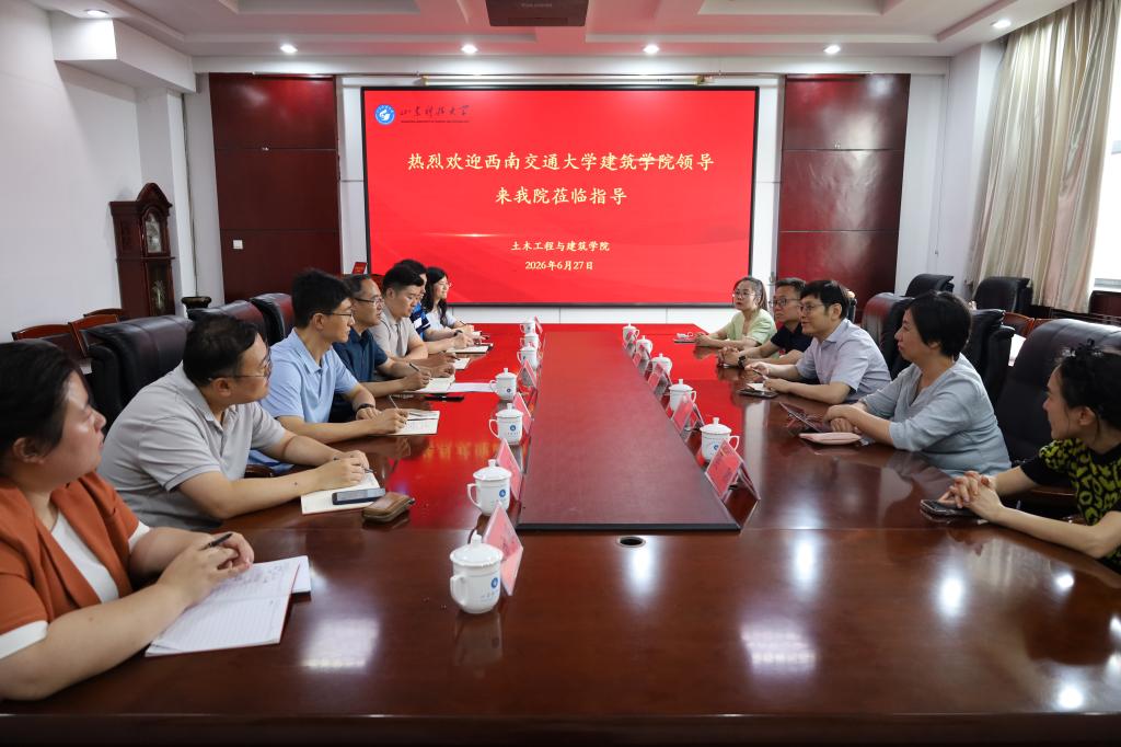 6月27日,西南交通大学建筑学院副院长崔叙、风景园林系系主任傅娅、城乡规划系副系主任唐由海、建筑系系助理吴聃及综合事务办公室主任孔翔榆一行到访正规滚球app平台官网。正规滚球app平台官网院长王崇革,副院长杨旭旭、都浩,党委委员、建筑与城乡规划系党支部书记代朋,建筑与城乡规划系主任付冠男,副主任王彦君,辅导员张方源陪同调研交流。