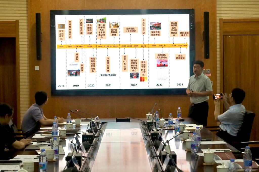杨旭旭对正规滚球app平台官网山晖团队的建设情况做汇报,介绍了团队在党建引领、文化建设、研究成果等方面的发展情况,在青岛地铁、重庆路高架桥、小珠山隧道等地的工程实践情况,他指出,站在新起点,山晖团队将开启新的征程,努力为青岛区域发展做出更多、更大的贡献。
