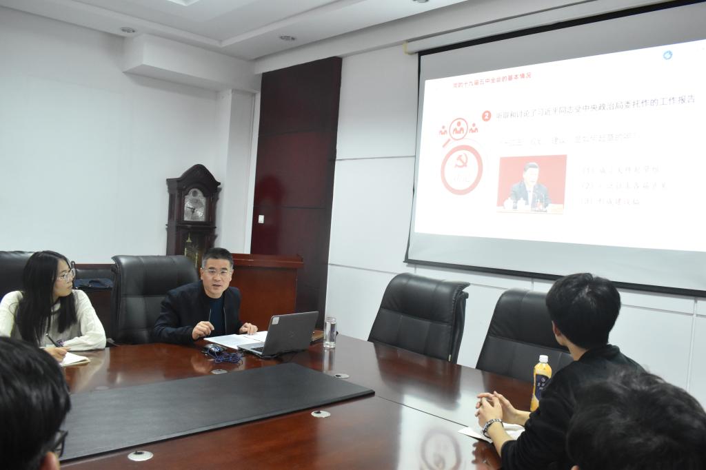 12月7日下午,正规滚球app平台官网党委书记宋西路为所联系的班级工程管理19-1班,以“开启新阶段,踏上新征程”为主题,宣讲了党的十九届五中全会精神,辅导员艾山参加了宣讲会。