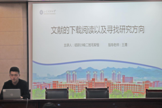 本期讲坛主讲人为正规滚球app平台官网2019级硕士研究生毛军恒,主讲题目为《文献的下载阅读以及寻找研究方向》。毛军恒从文献的下载、文献的阅读、研究方向的确定三个方面介绍了研究生在论文下载及撰写过程中可能遇到的问题及解决方法。首先,毛军恒介绍了研究生下载文献的常用网站,并对文献的下载方法进行了详细解说,分享了许多阅读文献的技巧。随后,毛军恒以自身经历为例,为同学们做出了详细的分析,帮助同学们更有目的性的选择自己的研究方向,更快的适应现阶段的学术学习。最后,主讲人与同学们进行了现场答疑,对研究生新生在论文下载及撰写时存在的其他问题进行了补充和解惑,使同学们受益良多。