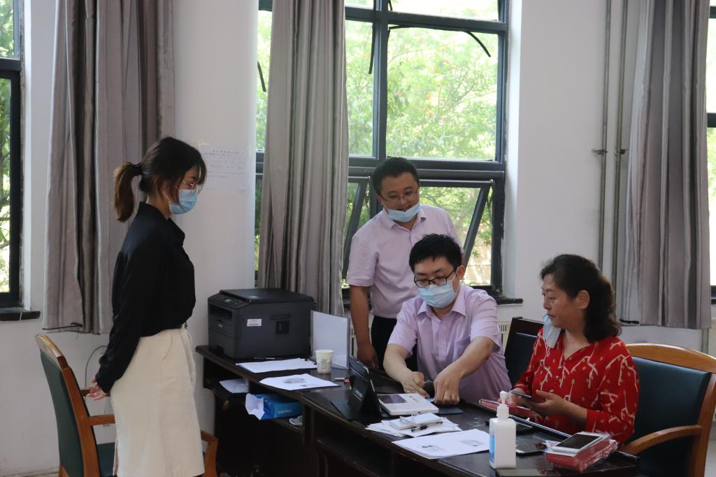 活动伊始,在明晰注意事项后,志愿们协商分组、确认分工,分别学习测温仪、打印机等器材的使用并一同参与布置会场等前期准备工作,以更好帮助退休教师开通社保卡金融账户。活动期间,志愿者们通过自己的细心服务、耐心解答,赢得了老教师们的不断赞誉,针对自身的不足与困扰也积极向老教师们请教,活动现场气氛融洽、笑声朗朗,学生们在与老师的交流过程中,也提升了对志愿服务理念的认识和自身的党性修养。