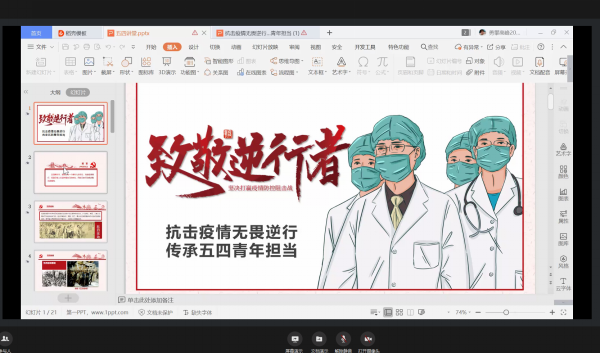 5月4日下午,正规滚球app平台官网团委依托企业微信平台,开展“赤诚爱国心·青春追梦人”系列线上微团课第一讲,拉开了纪念五四运动101周年系列主题教育活动的序幕。首期线上微团课为“抗击疫情无畏逆行,传承五四青年担当”,本次青年大学堂线上微团课由获得学校共青团先进集体的优秀团支部书记担任主讲人,学院团委尚军和各支部团员代表参加了本次活动。