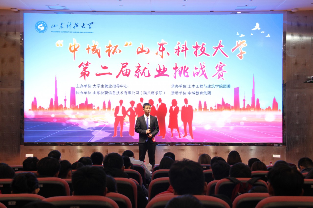 为培养大学生求职就业意识,树立科学就业观,拓展求职思路,增强求职能力,提高就业质量,搭建学生与企业之间的交流平台,由大学生就业指导中心主办、正规滚球app平台官网团委承办、山东校聘信息技术有限公司(猫头鹰求职)协办、中域教育集团赞助的正规滚球app平台官网第二届大学生就业挑战赛于2019年11月8日启动。历经求职知识培训、求职技能培训两项培训,初赛、复赛、预决赛三个赛程,12月5日下午4点,就业挑战赛决赛在9号教学楼144报告厅落下帷幕。