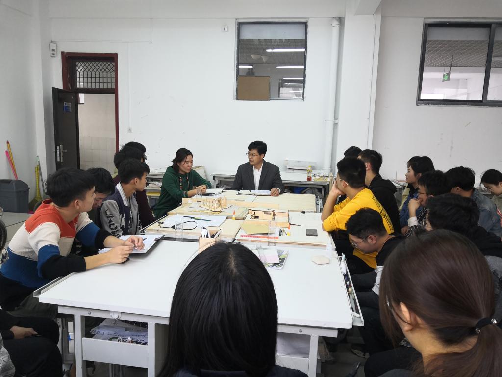 11月1日,学校资产处处长苏同营在辅导员鲍娜娜的陪同下深入其对接的建筑学2018-1班级,在J15-419室与全体学生进行了面对面交流。