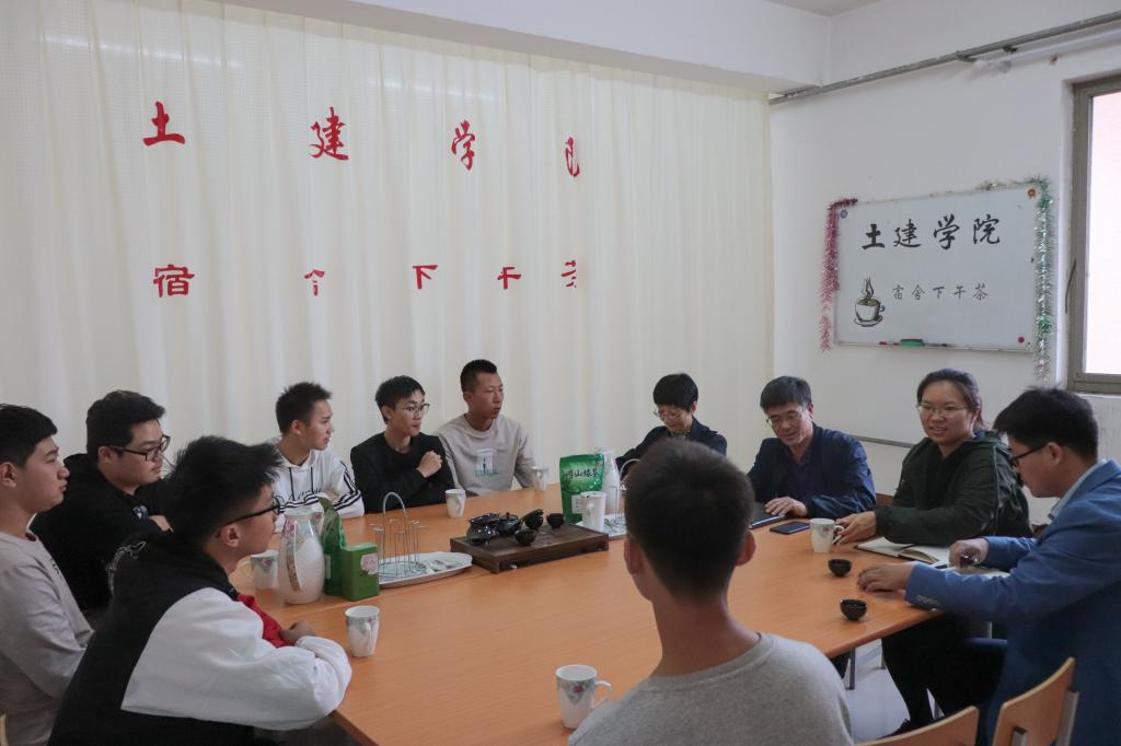 为深入贯彻落实“不忘初心、牢记使命”主题教育,广泛听取学生的想法和意见,促进师生交流,不断加强学院学生思想引领,助力学生教育、管理和服务工作,正规滚球app平台官网于10月23日下午开展“宿舍下午茶”。本次活动邀请到学院党委副书记(主持工作)宋西路、教科办老师王丽华,团委辅导员张翌、刘超陪同,与学院3位参军入伍复员学生和土木18-6班GB2-223宿舍进行了座谈。