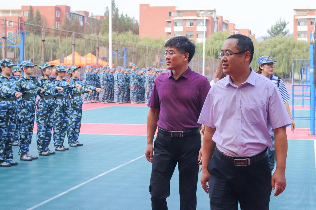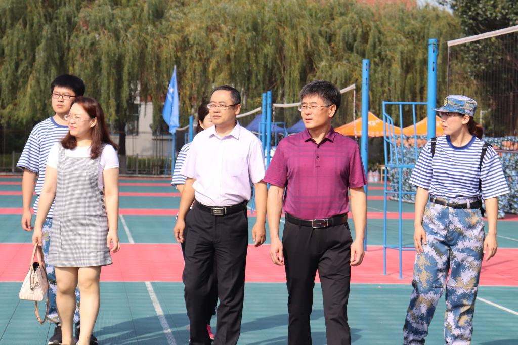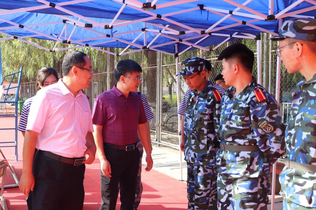 上午,正规滚球app平台官网党委副书记(主持工作)宋西路、院长王崇革在团委书记于娜及19级辅导员的陪同下前往训练场地,对新生军训的情况进行了详细了解和指导,对在场工作人员进行了慰问,对因伤无法参训的同学们表示关心,对军训场地布置和宣传工作进行了视察。学院领导还进入训练场地,驻足观看学生们的训练情况,与各位教官进行了交流,对他们的耐心指导和辛苦付出表示了感谢。