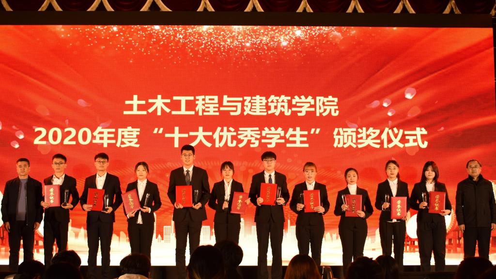 在“十大优秀学生”颁奖环节中,一段段VCR精彩纷呈,展示了滚球app平台官网十大优秀学生的傲人风采,展现了土建学子担当时代责任、勇于砥砺奋斗的精神风貌。他们是个人综合能力的突出榜样,是奋斗青春的典型楷模,是土建学子的优秀代表,他们的优秀事迹激励广大同学奋勇争先、一路向前。2020年度校十大优秀学生、院十大优秀学生代表王家轩发言,他表达了对学院领导和老师悉心培养的感激和对同学们团结互助的肯定,以自身成长激励在座同学奋发图强,奋勇拼搏,在磨砺与挫折中成长,在坚持与奋斗中成才。