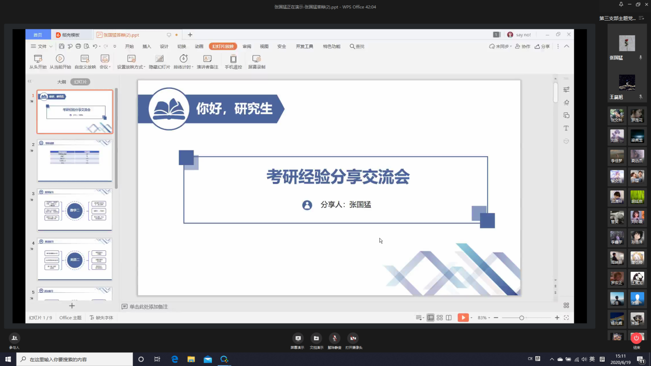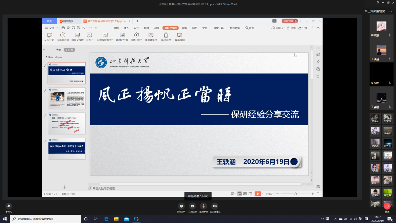 6月19日,正规滚球app平台官网本科生第三次党支部通过企业微信平台举办“榜样的力量”分享交流会。此次党日活动由党支部书记朱统汉主持,邀请了四名毕业生党员向低年级同学分享经验。