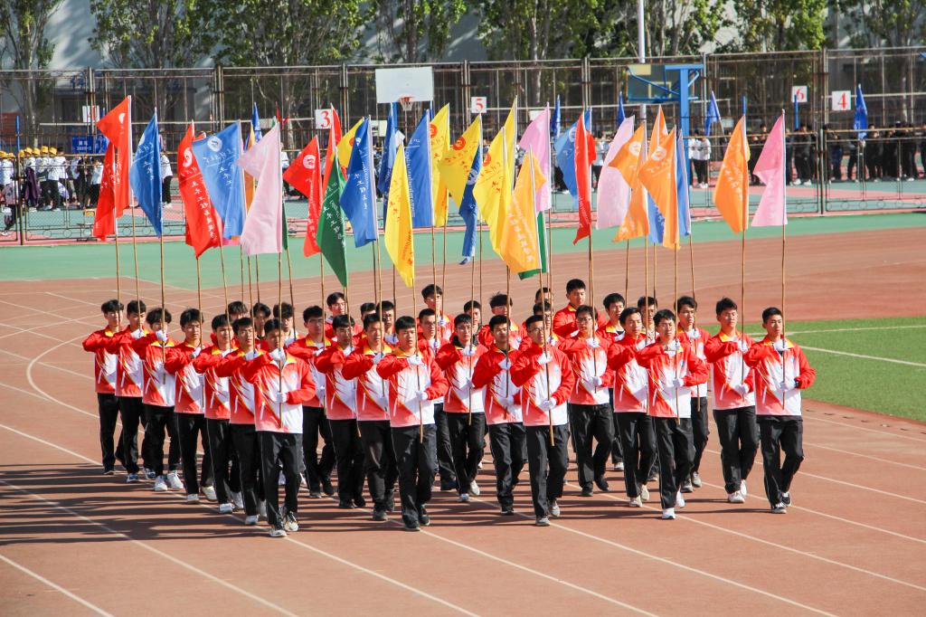 一声嘹亮的口号划破会场的宁静,国旗护卫队迈着铿锵有力的步伐,昂首阔步前来;彩旗队紧随其后,一展青春风采;各班级运动员代表方队着装统一,步伐整齐,口号嘹亮,展现班级魅力。待各方队就位后,学工办主任朱统汉发表开幕致辞并向运动员提出三点希望。在运动员代表刘云龙与裁判员代表卢薪羽郑重宣誓后,高静宣布正规滚球app平台官网2021年“中化学交建杯”春季田径运动会正式开始。