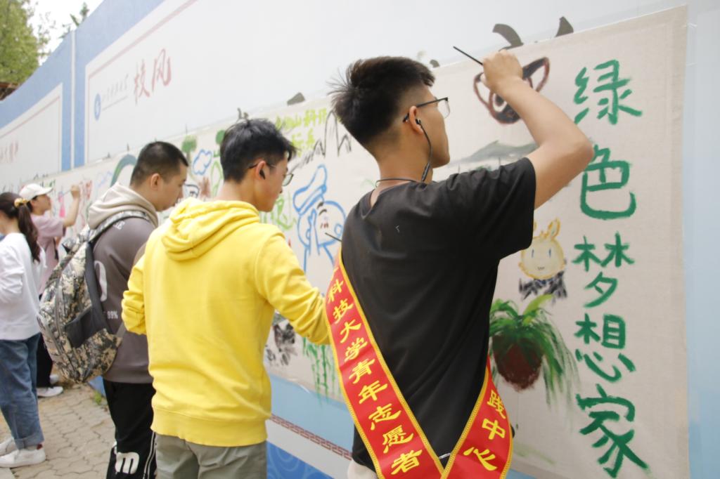 为了培养同学们爱护校园、保护环境的意识,共同营造绿色整洁的生活环境,5月9日上午10点,正规滚球app平台官网青年志愿者协会在A餐南门举办了“聚科大之美,献校庆之礼”系列美育活动之“绿色梦想家”彩绘活动。