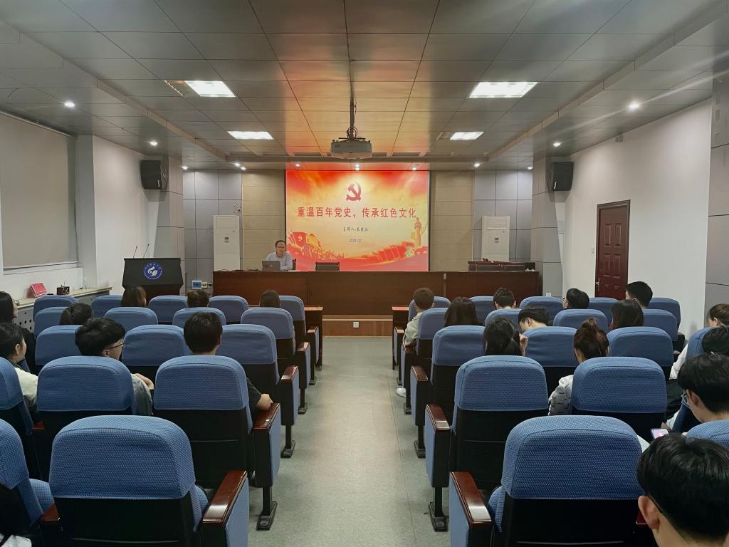 为进一步推进党史教育走深走实,让学生团员在学“党史”中,常学常新、不断感悟,巩固和升华理想信念。5月17日,正规滚球app平台官网团委书记朱统汉在J15-219讲“重温百年党史,传承红色文化”主题团课。学院2017级和2018级团员代表参加。