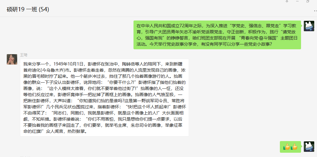 正规滚球app平台官网各团支部高度重视、精心组织,通过观看“青年大学习”网上主题团课、线上会议、话题讨论等多种形式,开展集中学习。硕研2021级全体同学在土建楼219集中观看优秀党史影视作品《建军大业》,通过影片大家被这段革命先贤的过往所震撼,纷纷表示要立足当前,从我做起,要把今天的努力与实现中华民族伟大复兴的中国梦联系起来;硕研19-1班利用微信群开展党史故事分享接龙,从而加深了对党史的理解;本科21级新生利用晚自习时间通过团支书讲团课、手签名等方式增强学生的爱国热情。