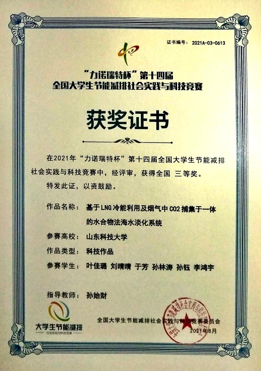 日前,以“节能减排,绿色能源”为主题的“力诺瑞特杯”第十四届全国大学生节能减排社会实践与科技竞赛决赛在山东大学举行。由正规滚球app平台官网本科生组成的团队获国家级三等奖。