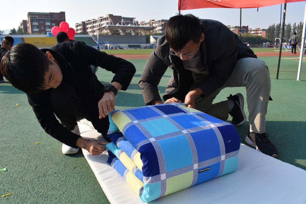 为丰富滚球app平台官网学生的校园文化生活,营造富有特色的寝室文化氛围,增强学生的宿舍安全意识;同时为提高广大同学的团队精神,形成良好的生活和学习环境,推动良好学风的建设,营造和谐友爱的校园氛围。正规滚球app平台官网于11月中旬至12月中旬举办第十七届“和谐土建,温暖之家”宿舍文化节系列活动。11月13日,正规滚球app平台官网自律会在风雨操场举办了宿舍文化节启动仪式和“叠军被大赛”。学院党委副书记兼副院长高静、自律会会长王祺全参加了本次启动仪式。