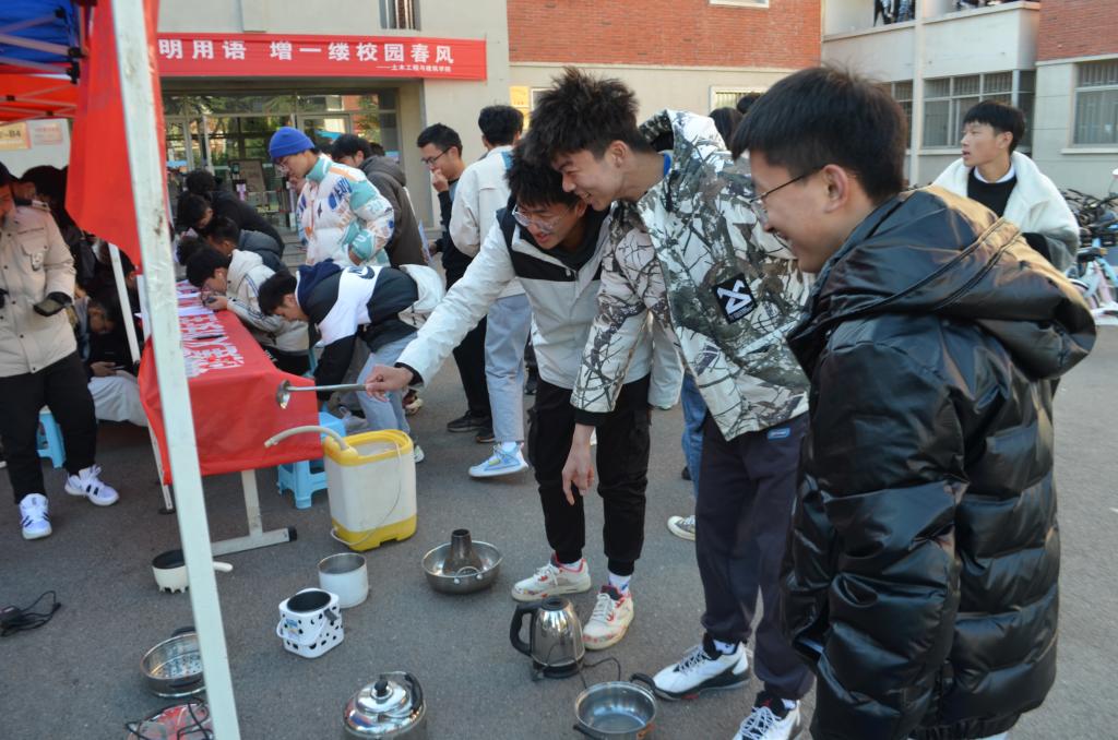 活动伊始,正规滚球app平台官网自律会工作人员结合因使用违禁电器而引发的安全事故案例向同学们讲解了违禁物品的危害以及远离违禁物品的重要性,并展示了宿舍内常见的违禁电器,号召大家远离违禁危险物品,构建文明安全校园;随后,活动工作人员在活动场地发放日常安全知识问卷,同学们在现场积极踊跃参与答题,并纷纷在现场的条幅上签字,表明了同学们远离违禁电器,维护宿舍安全的决心,进一步提升了同学们远离违禁物品的自觉性和主动性,切实守好校园安全底线。