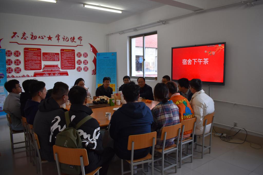 为更好地了解土木工程专业道路与桥梁工程方向高年级学生的学习和生活情况,帮助他们解决在就业、考公、考研方面遇到的困惑,正规滚球app平台官网于12月3日下午开展了“宿舍下午茶”活动。正规滚球app平台官网道路与桥梁工程系教授张宪堂、道路与桥梁工程系主任单景松、道路与桥梁工程系副主任聂瑞峰、青年教师焦玉颖做客“宿舍下午茶”。学生工作办公室主任朱统汉,辅导员刘超、刘泽群以及9名2018级和2019级的学生代表参加活动。