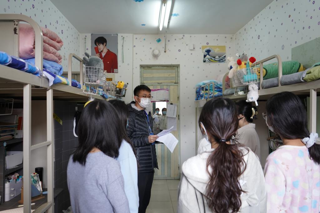 层长每天通过“早中晚一日三巡”的方式,检查所负责楼层宿舍是否存在违禁电器、夜不归宿等情况,监督宿舍认真落实“一日三检两报告”制度和“突发问题秒报告”制度,督促做好宿舍通风消杀、垃圾第一时间下楼等各项疫情防控要求,提醒宿舍成员按时起床、按时上网课。