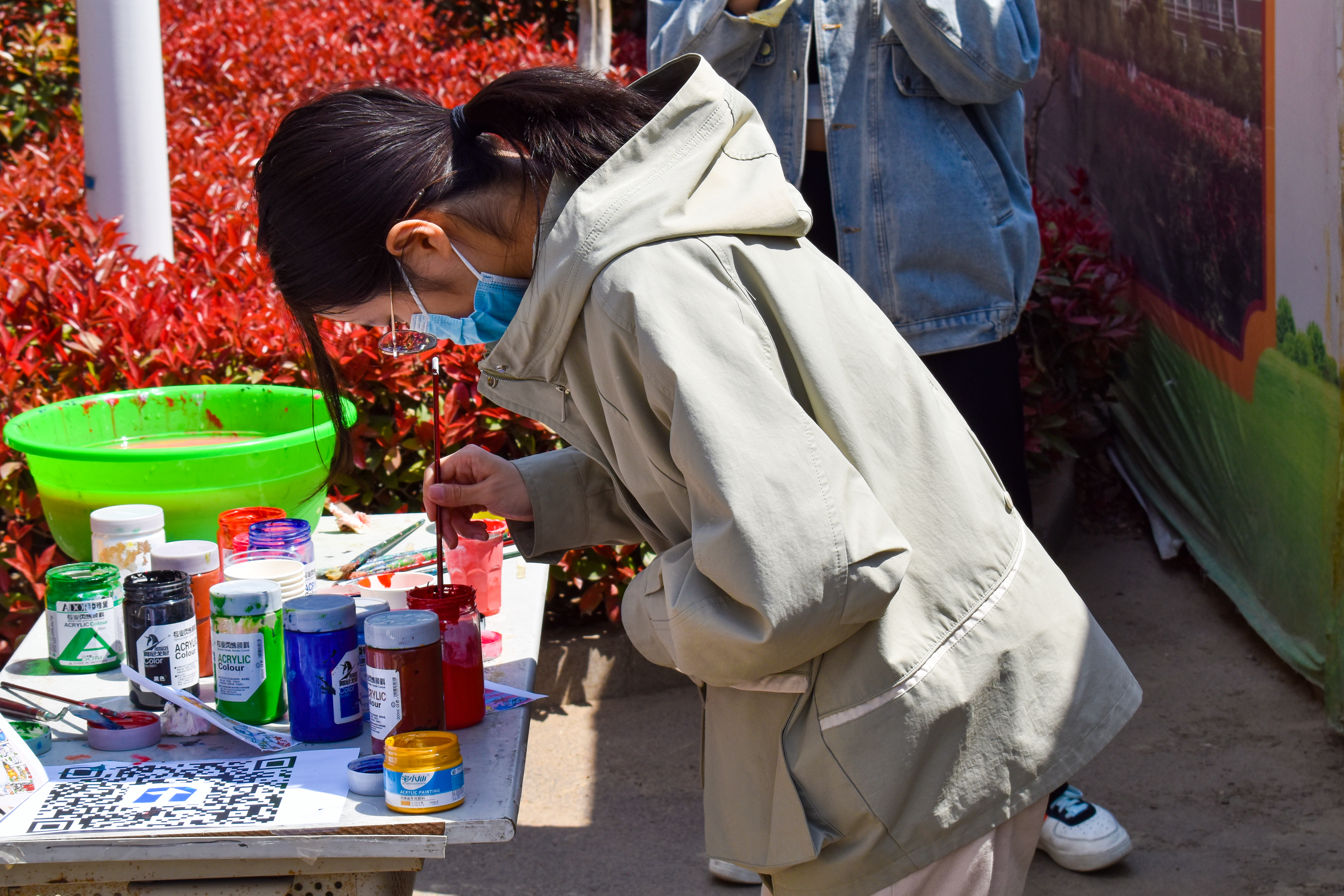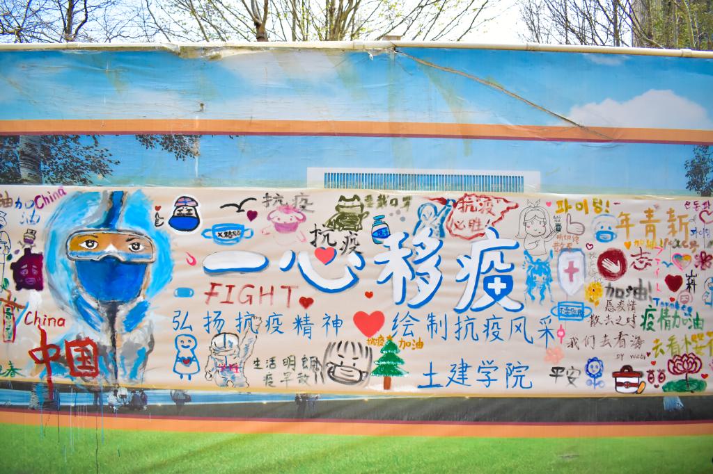 彩绘过程中,吸引了许多师生驻足欣赏。同学们纷纷表示:现如今疫情仍旧反复,身为新时代大学生的我们或许无法奋战于抗疫前线,但也可以做一些力所能及的事助力疫情防控,传递力量与温暖,肩负起青年大学生的使命与担当。