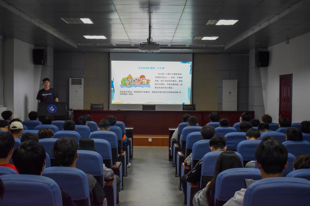 为进一步加强校园安全教育,预防和减少溺水事故发生,提高自救互救和安全防范能力,切实保障学生的生命安全。5月24日晚,正规滚球app平台官网于J15-219报告厅召开“让青春远离溺水”安全知识宣讲会。2021级学生代表参加会议。