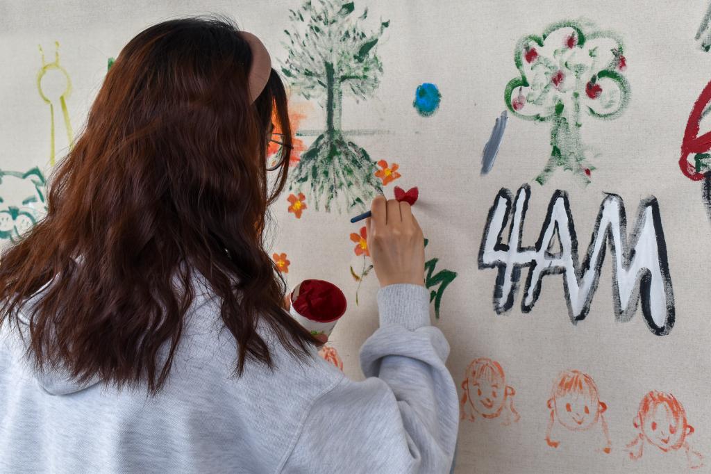 本次活动以绘长卷的形式展开。志愿者们提前将画布粘贴在墙壁上,准备好各色颜料和画笔。广大山科学子积极参与,你画一笔,我添一色,尽情描绘自己想象中的春天。经过四个多小时的创作,同学们将一棵棵形态各异的树木种于纸上,一副色彩斑斓的艺术长卷呈现在大家眼前。