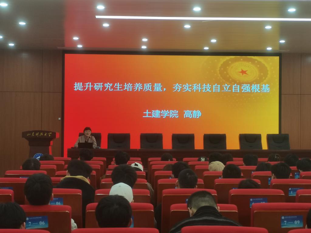 为了进一步营造研究生的学术氛围、增进研究生的综合素养。4月7日上午,正规滚球app平台官网在J15-136举办了“提升研究生培养质量,夯实科技自立自强根基”专题报告会。本次报告会由学院党委副书记、副院长高静主讲,研究生辅导员史卫平主持,2022级全体硕士研究生参加会议。