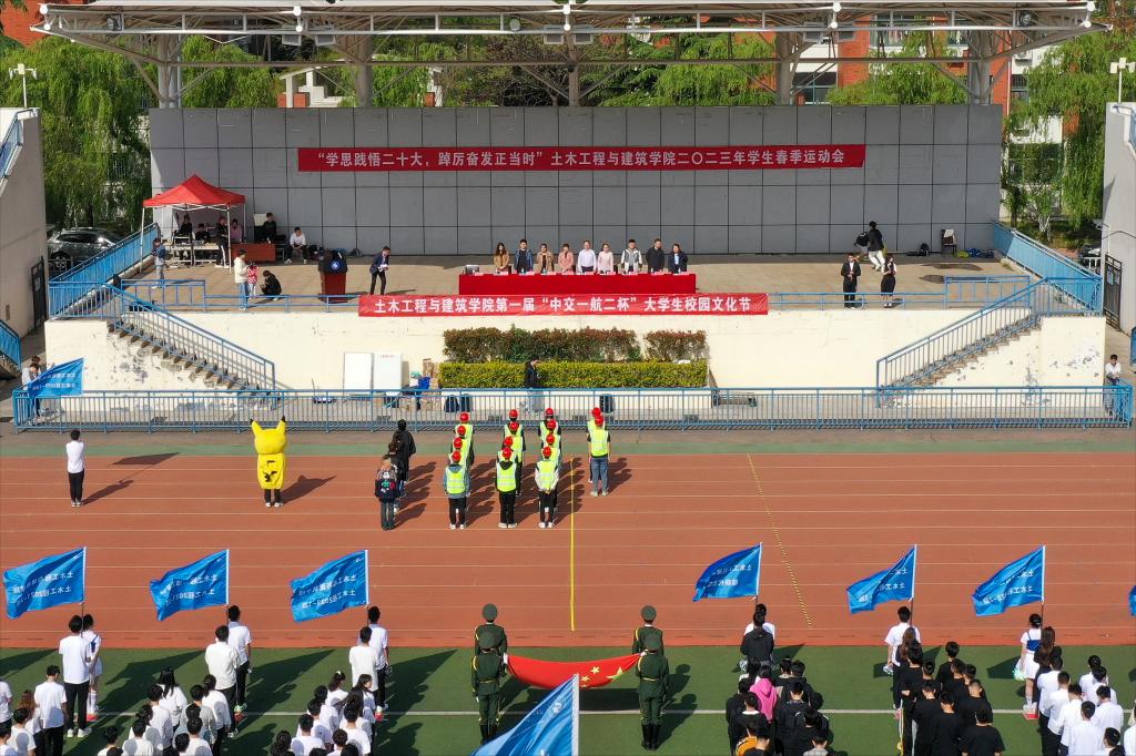5月7日,正规滚球app平台官网第一届“中交一航二杯”大学生校园文化节之2023年学生春季运动会在风雨操场隆重开幕。学院党委副书记兼副院长高静、学生工作办公室(团委)主任(书记)朱统汉及全体辅导员出席运动会开幕式,开幕式由辅导员王贝贝主持。