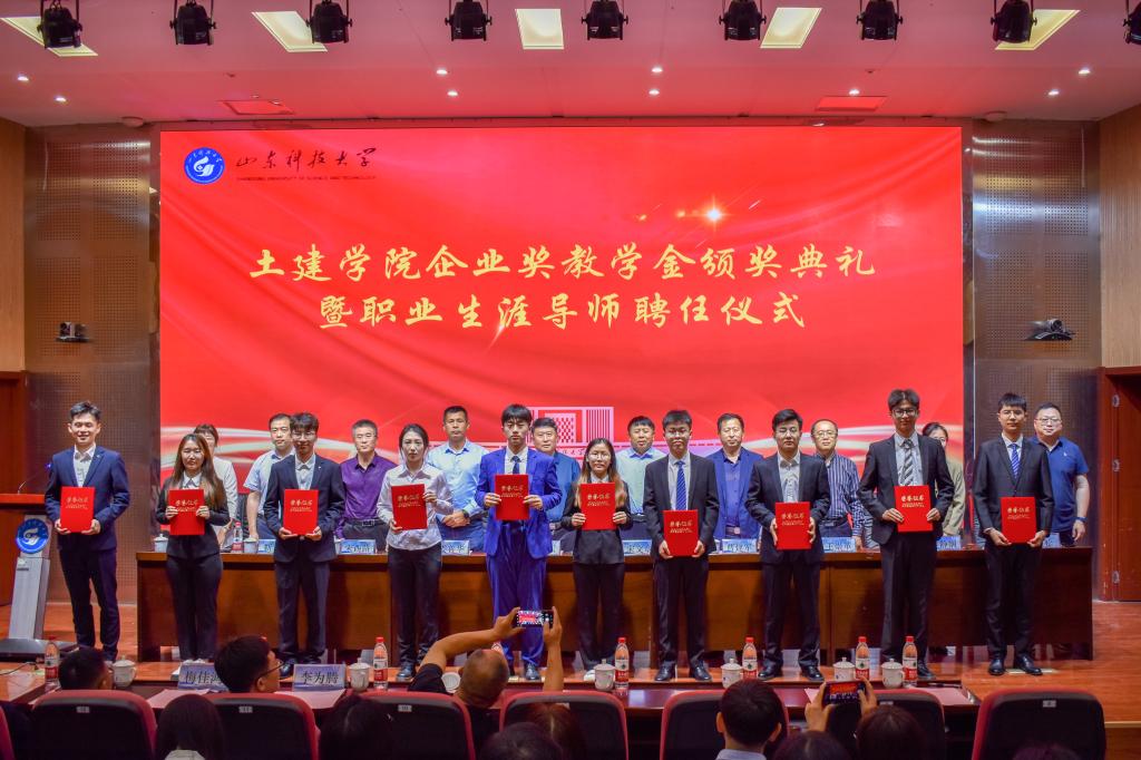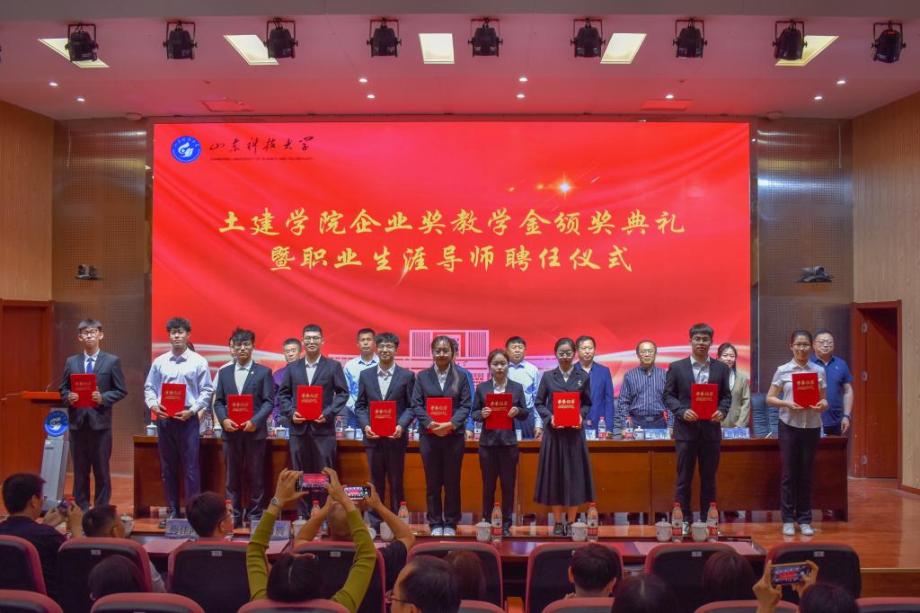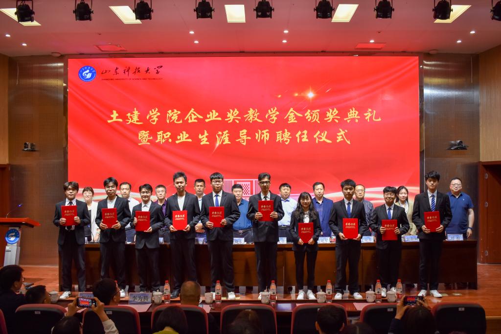 5月24日,正规滚球app平台官网企业奖教学金颁奖典礼暨职业生涯导师聘任仪式在J9-144报告厅举行。烟台平安信息工程职业技能培训学校校长宋文章,日照市政集团常务副总经理娄善华、爆破公司经理焦淑君,山东省路桥集团青岛分公司党总支书记、副总经理曹建军,党总支委员、总工程师梅佳鸿,学校合作发展处处长王晓东,学生工作处副处长靳凯,校团委副书记侯静娴,研究生院副院长刘松,及正规滚球app平台官网师生代表参加了本次颁奖典礼。典礼由正规滚球app平台官网党委副书记高静主持。