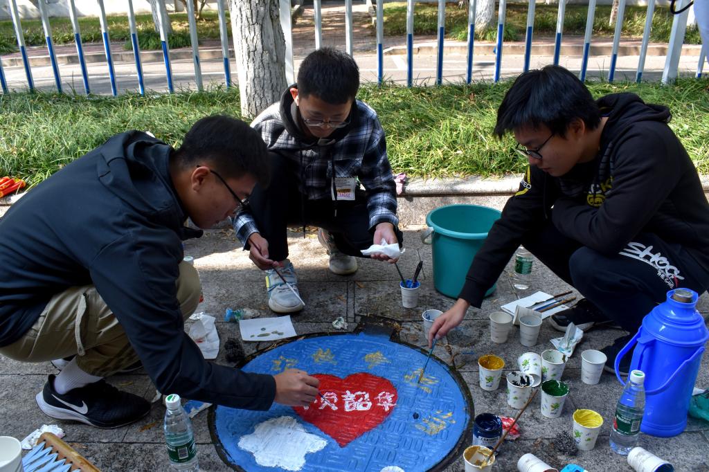 10月14日上午,正规滚球app平台官网在风雨操场西侧举办井盖彩绘活动,学生们以精彩的创意为井盖增添绚丽色彩,用手中的画笔打造校园特色景观。
