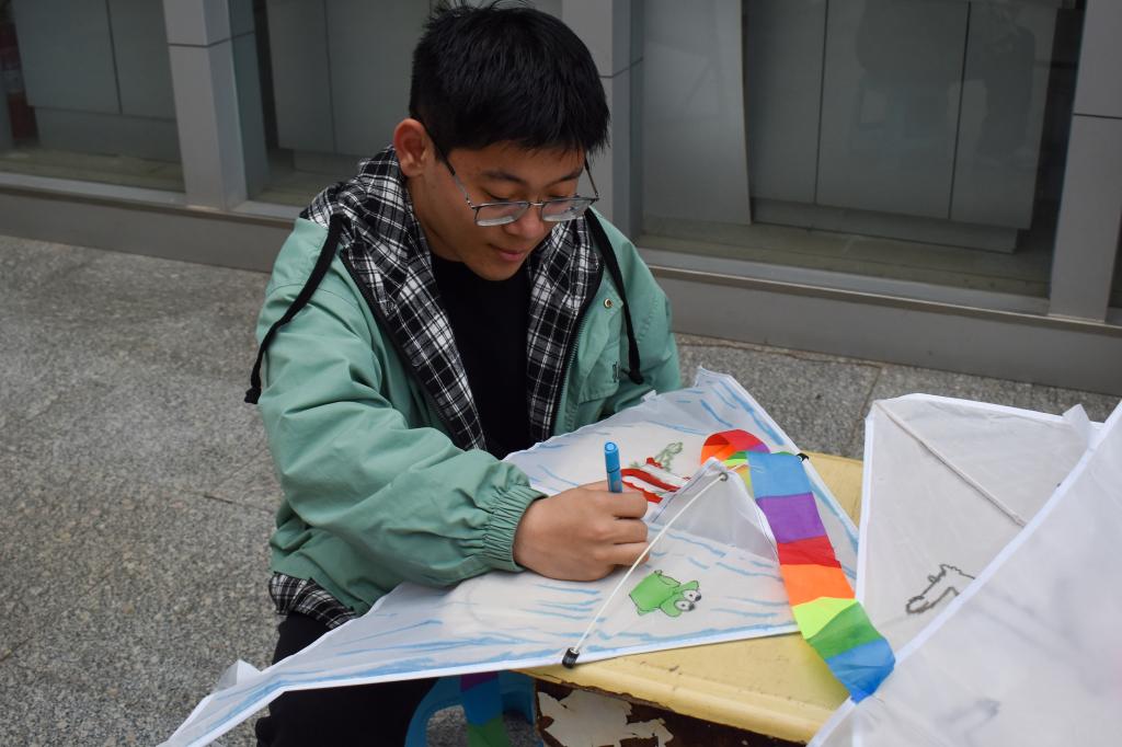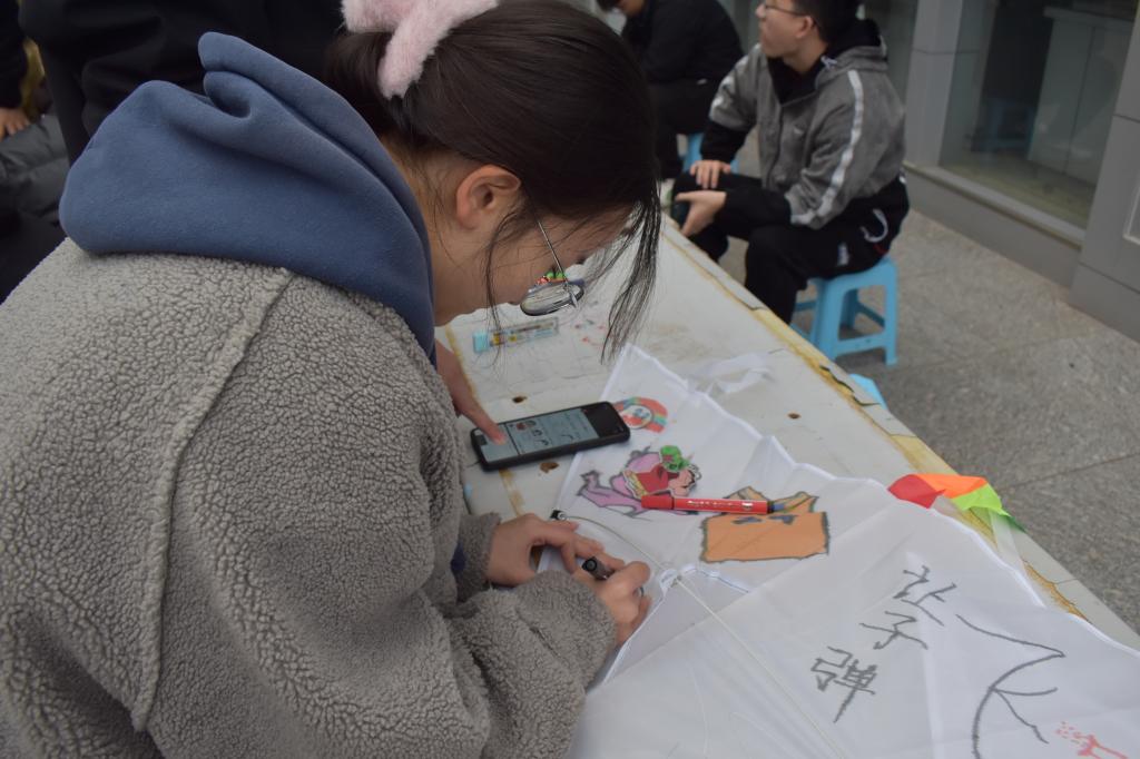 “一年一度春草绿,又见纸鸢满园飞。”活动开始,学生们在燕型空白风筝上进行艺术创造,充分发挥想象力和创造力,一笔一划将心中的色彩与想象跃然风筝之上,赋予风筝风格各异的色彩、生机和内涵,令参与其中的学生们在集体创作中进一步感悟中华传统文化的魅力与乐趣。