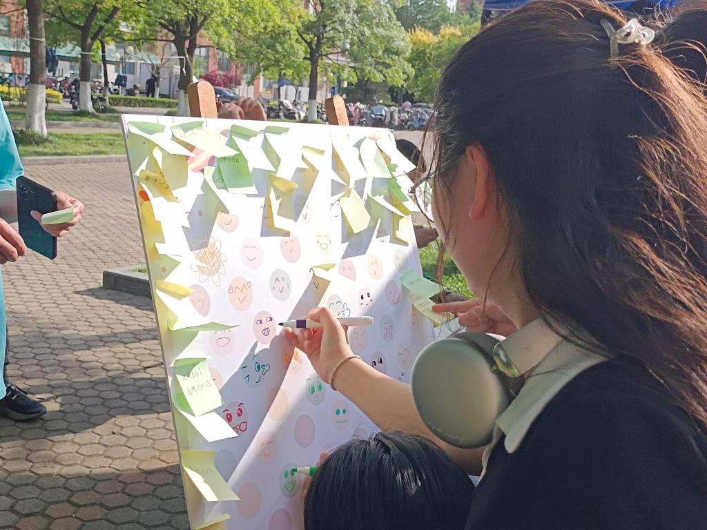 本次活动内容丰富多彩,包括绘画笑脸、书写心愿、快乐问答三个部分,吸引了众多学生积极参与。绘画笑脸环节中,学生们在相关人员的引导下,深入探寻内心世界,用色彩和线条展现自己的内心世界;在书写心愿环节,学生们在思考后,写下自己的心愿或是祝福,与笑脸共同贴在展板上;快乐问答环节中,学生们了解对多巴胺等快乐激素的功能和提高快乐激素分泌的方法,再通过问答的方式加深印象,让同学们更加了解自己的身体,关注自我,以及了解快乐的多样性,缓解不良情绪,制造快乐。活动中,同学们在绘画中绽放青春活力,感受轻松欢乐的氛围,激发自身想象力与创造力。