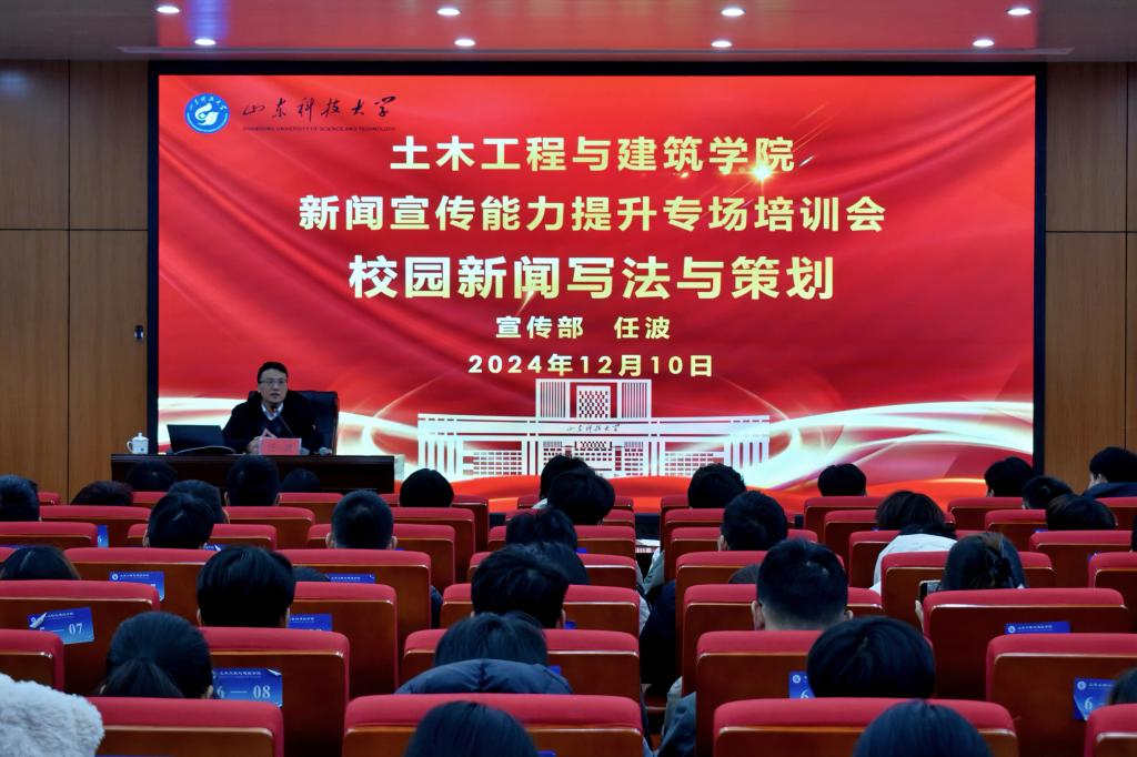 为切实提高滚球app平台官网新闻宣传工作队伍的业务能力,不断提升学院新闻宣传工作的质量和水平,正规滚球app平台官网于12月10日在J15-136报告厅举办新闻宣传能力提升专场培训会。本次培训会邀请到校党委宣传部任波老师主讲,学院新闻宣传中心成员及各班级宣传委员参加此次培训会,培训会由学生工作办公室主任、团委书记王贝贝主持。